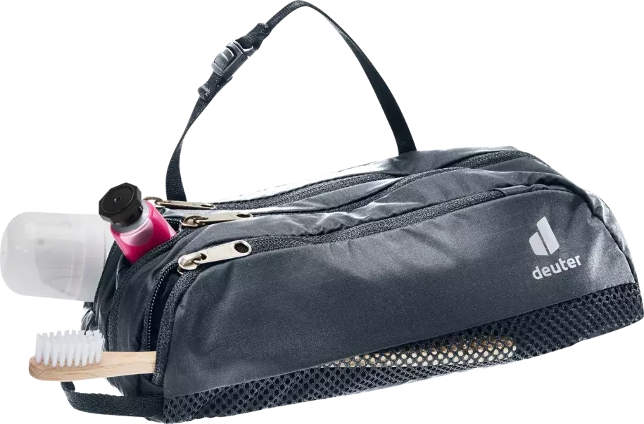 Deuter toiletry bag - lightweight zipped mesh outer pocket for toothbrush two zipped compartments zipped main compartment with inner mesh compartment hanging strap with buckle