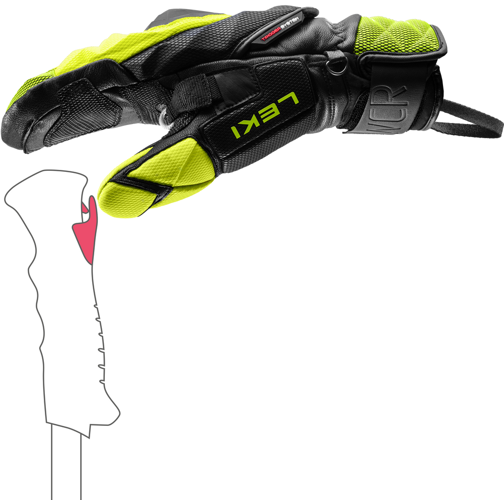 • LEKI WCR Venom SL 3D Mitt – World Cup slalom mitt with Trigger System, finger channels, Glidezone protection, ceramic reinforcements and Thinsulate insulation for top performance in cold.