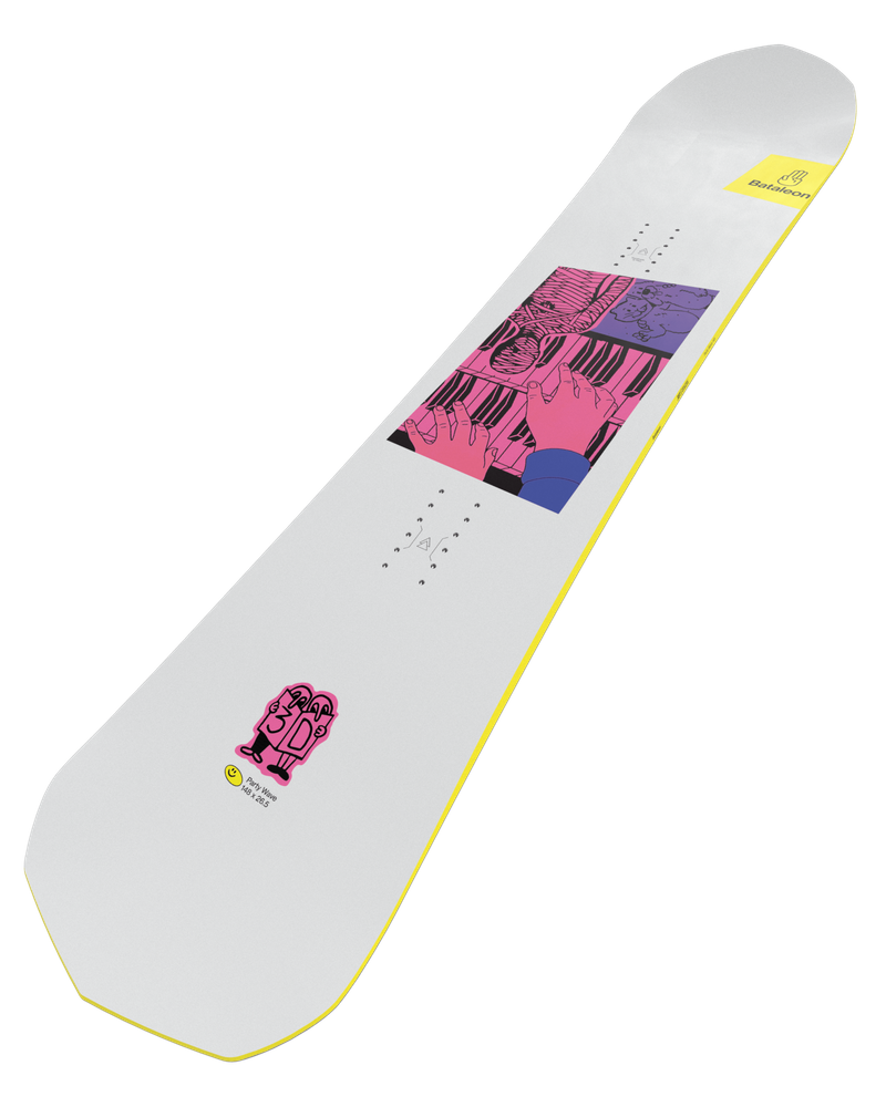 The Party Wave is everyone’s favorite fun board. Decades of experience with 3D shapes have enabled us to shift volume from length to width without sacrificing edge-to-edge performance.. It’s designed to be ridden 5-10 cm shorter than your regular deck. It’s a nimble and floaty pocket rocket that dials up the fun all over the mountain.