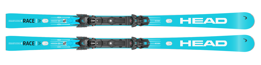 The ski's high performance is due to its construction, which includes a wood and Titanal core, a Worldcup plate, and durable Phenolic sidewalls. The e-Race Pro also features HEAD's EMC (Energy Management Circuit) technology, which effectively cancels out negative vibrations while maintaining dynamic responsiveness. The package is completed with technologies such as Graphene Worldcup Sandwich Cap construction, a UHM C base with Race RD structure, and a Rebel Camber profile, ensuring unparalleled performance on the slopes.