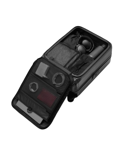 • The unique front access face of this Ramverk suitcase was designed to simplify travel. Stash your most important travel items in the designated ‘essentials’ segment at the front of the bag to make security checks fly by. Engineered for 1-2 night getaways.