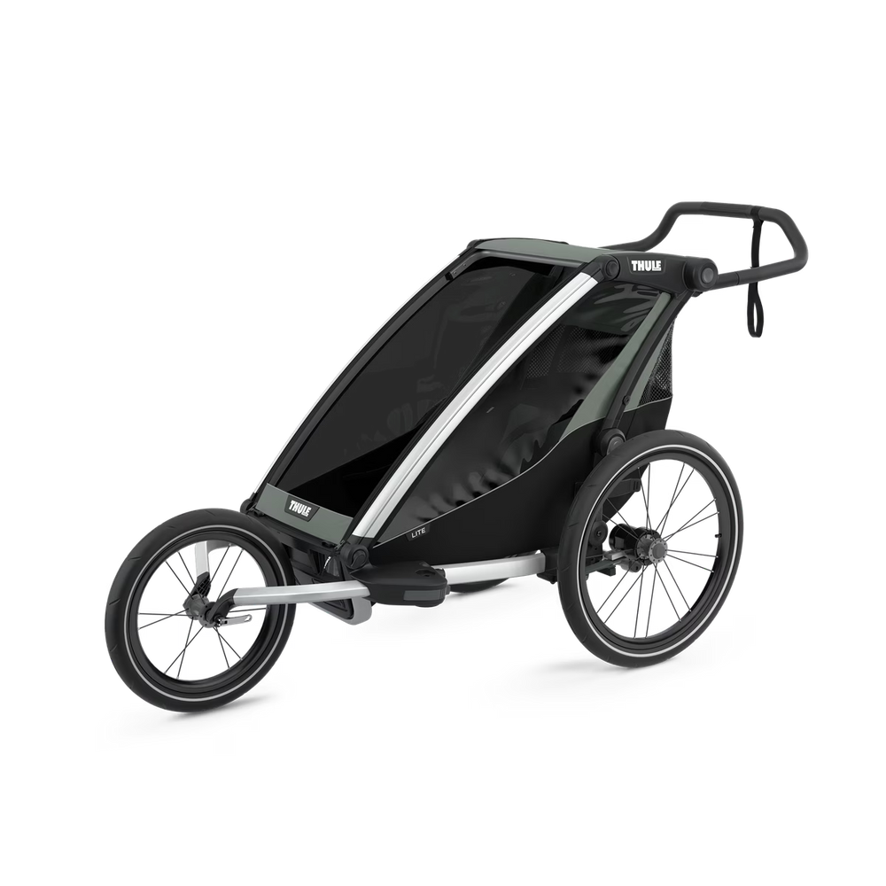 The Thule Chariot Lite Single is a versatile, single-seat multisport bike trailer designed for active parents. It functions as a bike trailer, stroller, jogging trailer, and even a cross-country ski trailer (additional kits sold separately). Its lightweight frame and compact dimensions make transport and storage incredibly easy.
