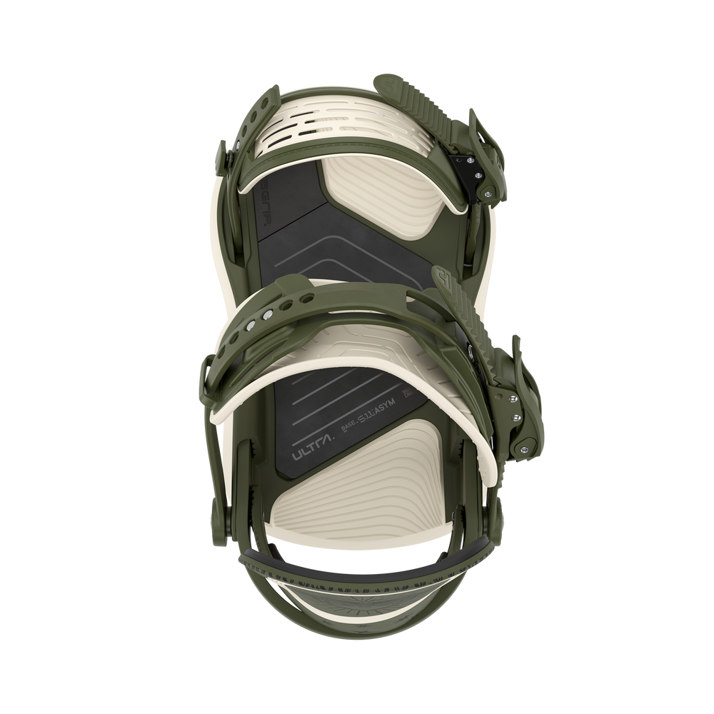 Introducing the completely new Union Ultra bindings. Incredibly responsive and highly cushioned, the Ultra uses the latest manufacturing technologies from Union to redefine how freestyle bindings should perform. Extremely lightweight, built on a layering system where each layer serves a specific purpose, much like a running shoe. The new Stage 11 ASYM Duraflex ST base has been designed to enhance torsional flex. The base is also significantly lightweight, offering superior control and comfort.