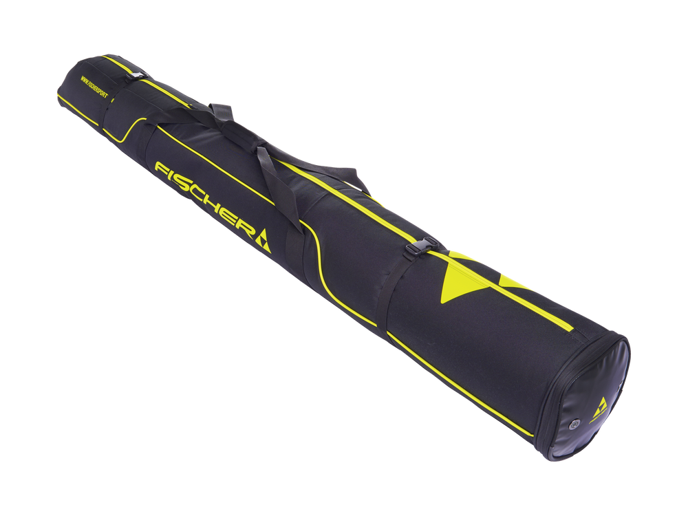 Carry bag with handle straps for one pair of Alpine skis is 175cm long and can be extended to 190cm. Double zipper and compression straps keep things secure with easy access when needed. Made of recycled PET fabric